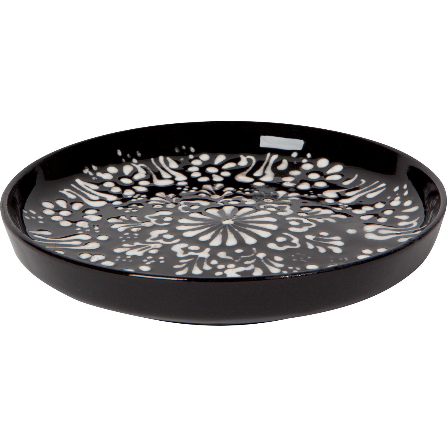 The intricate pattern and exuberant colors of the Evani dish reflects its Turkish origin. Made of earthenware and measuriing 4.75" in diameter, the Evani dish is safe in the microwave and dishwasher.