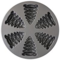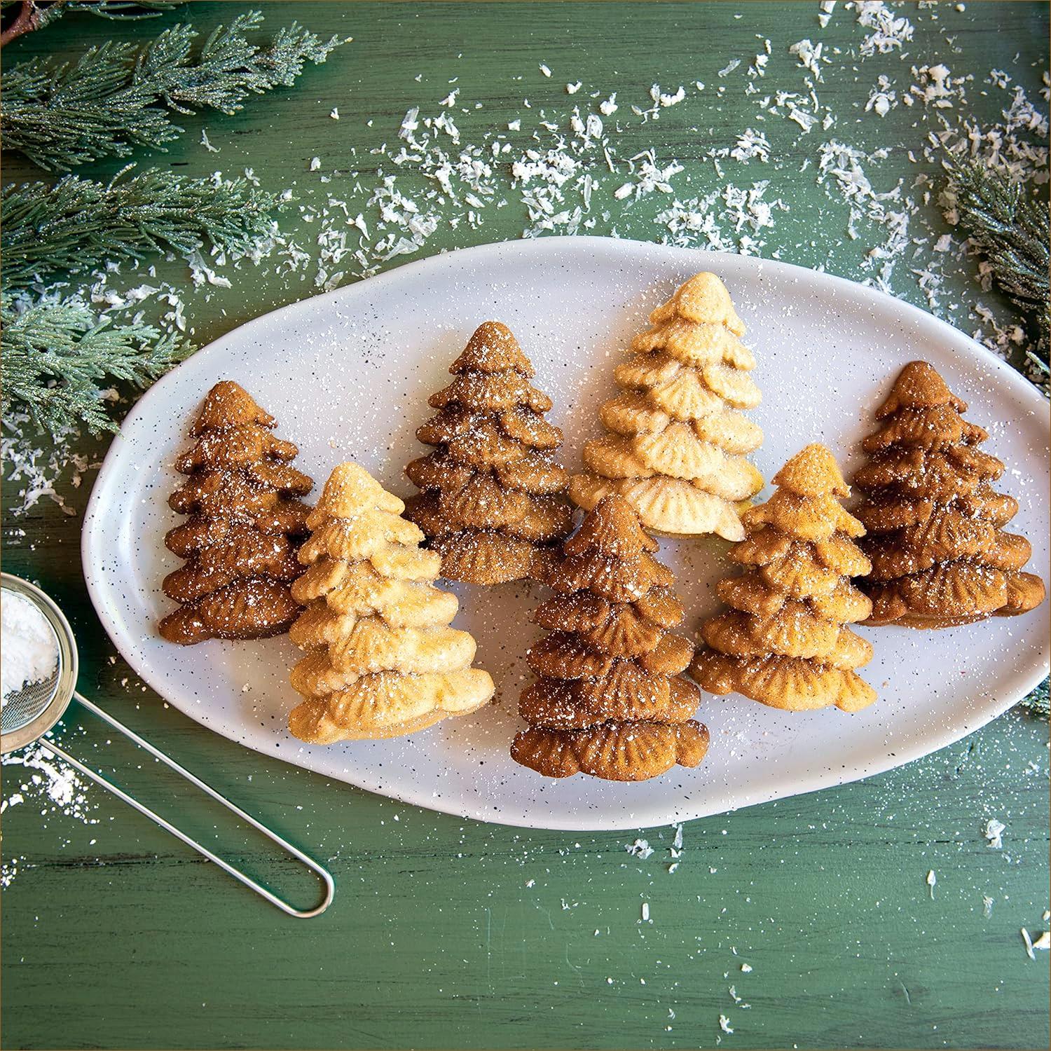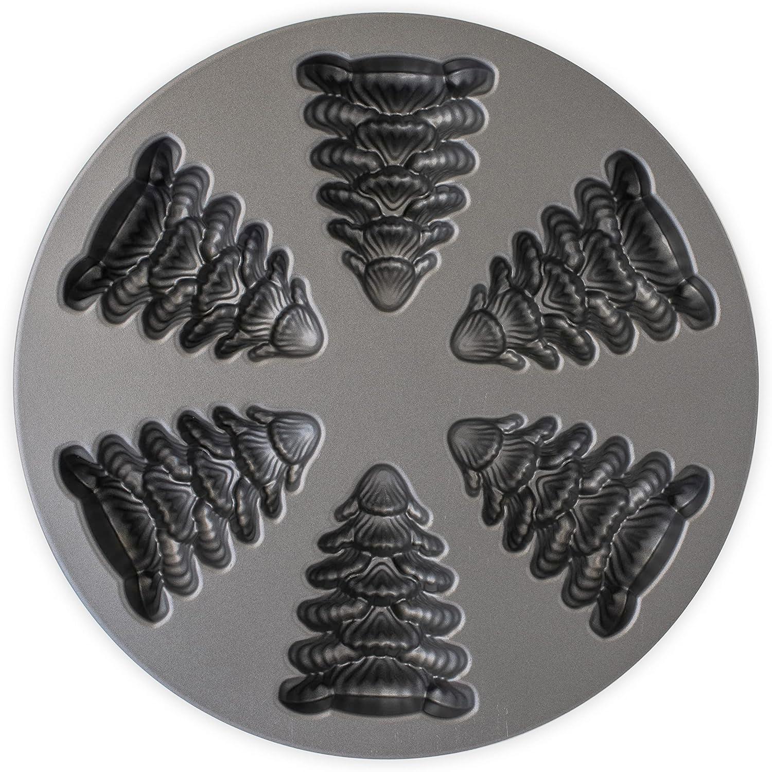 This festive pan features six evergreen tree-shaped cavities, perfect for baking little fir trees for holiday dessert gatherings. With a 2.5-cup total capacity, the pan is ideal for multiple mini cakes, molded desserts, or creative seasonal treats. Made in the U.S. from heavy cast aluminum, the pan ensures even baking and crisp, detailed designs, allowing each miniature tree to maintain its intricate shape. The premium nonstick interior allows for effortless cake release, and cleanup is easy. Oven safe to 400° F, hand washing recommended.