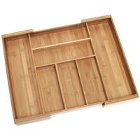 Pushed together, this expandable drawer organizer measures 13" wide x 18" x 2.5" deep; slide it open to a maximum of 23" wide.