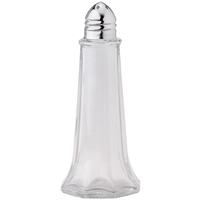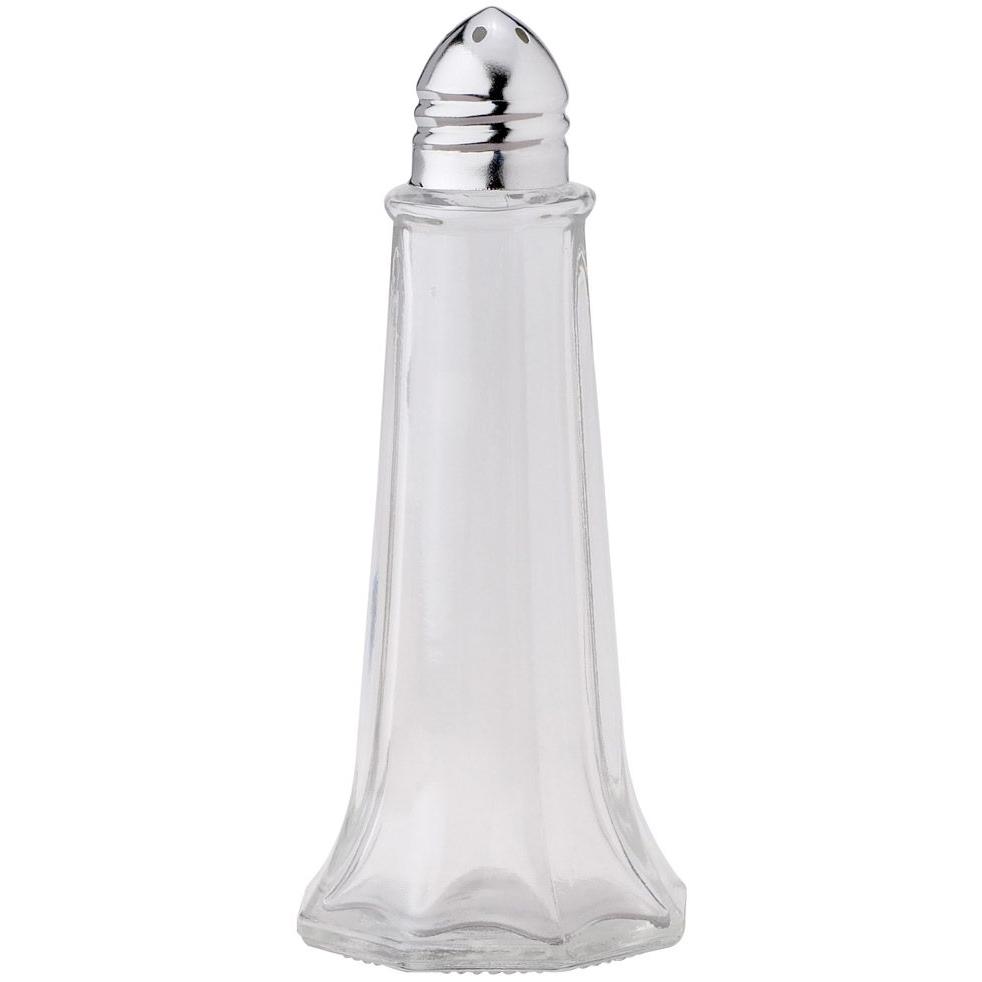 This faceted glass shaker features a stainless-steel top and holds 3.5 ozs. of salt, pepper or anything you want to shake. 6.5" tall, dishwasher safe.