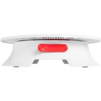 This cake decorating turntable features a brake to lock the turntable in place when doing intricate designs. It's made of APS plastic and features sealed ball bearings for smooth, jitter-free rotation. The top features measurement markings in English and metric units and the base features non-slip feet to keep the turntable securely in place. It measures 12" in diameter and just 3.2" high for more compact storage.