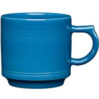 Still made the way it has always been, since 1936, in Newell, West Virginia, Fiesta dinnerware is justifiably an American classic. Made of high-fired, fully-vitrified stoneware with lead-and-cadmium-free glazes, Fiesta dinnerware is incredibly resistant to cracking, chipping and crazing, and is safe in the oven, microwave, freezer, and dishwasher. The stacking mug has a capacify of 16 ozs. and measures just under 4" in both height and diameter.