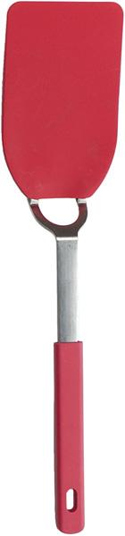You'll like this turner; we've used it a lot and it's just really good, the tool you reach for all the time, especially with non-stick cookware. The 7.5"-long handle is stainless steel with a soft Santoprene grip. The blade is flexible nylon with a sharp edge, so it slides under food with ease. The nylon is heat-safe to 400 degrees F, so you're good for all types of stovetop cooking and of course, the turner goes in the dishwasher without a problem. The blade measures 2.75" wide and 4.5" long.