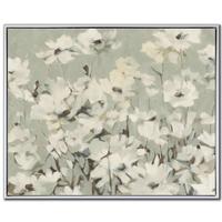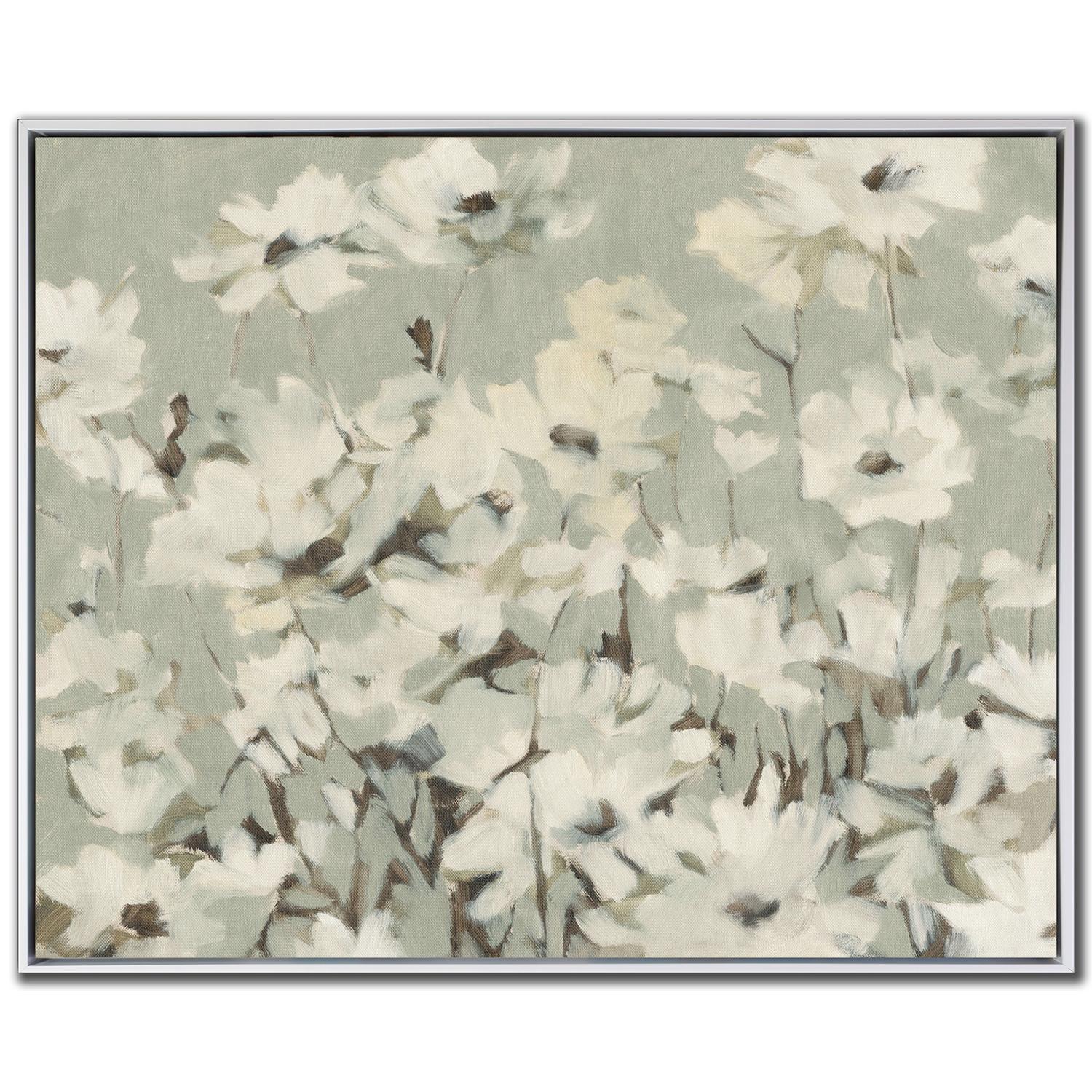 Hand embellished canvas art in a white floating frame, 24” x 30”.