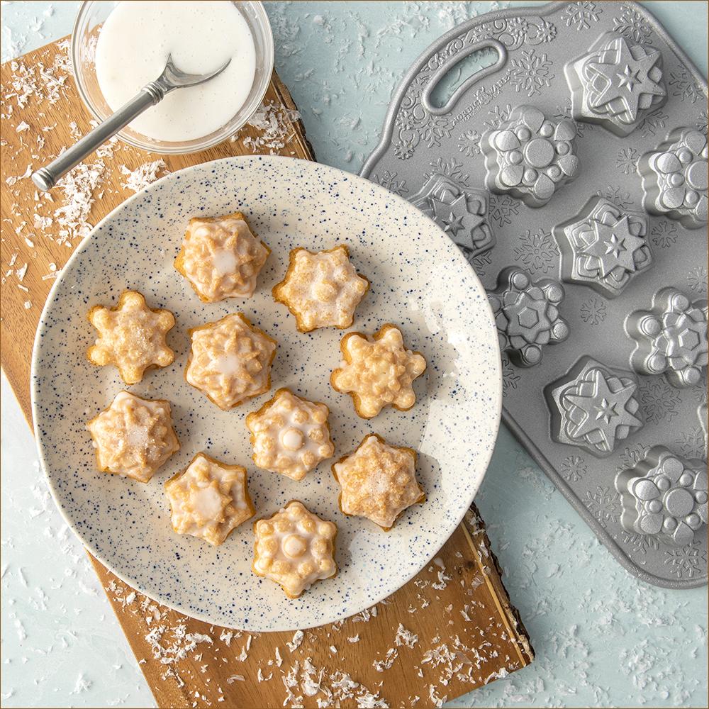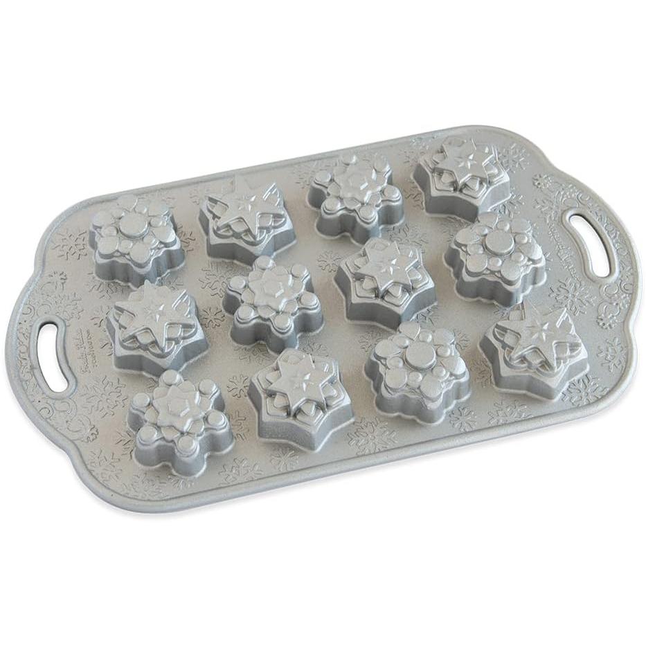 This charming pan features 12 individual snowflake-shaped cavities, perfect for creating miniature cakes or treats that capture the delicate beauty of snowflakes. With a 2-cup total capacity, it’s ideal for holiday parties, family gatherings, or festive treats to share with friends. Made in the U.S. from heavy cast aluminum, the pan ensures even heat distribution for perfectly baked treats while preserving the crisp, intricate snowflake details. The premium nonstick interior allows for effortless cake release and easy cleanup, keeping every design intact. Oven safe to 400° F, hand washing recommended.