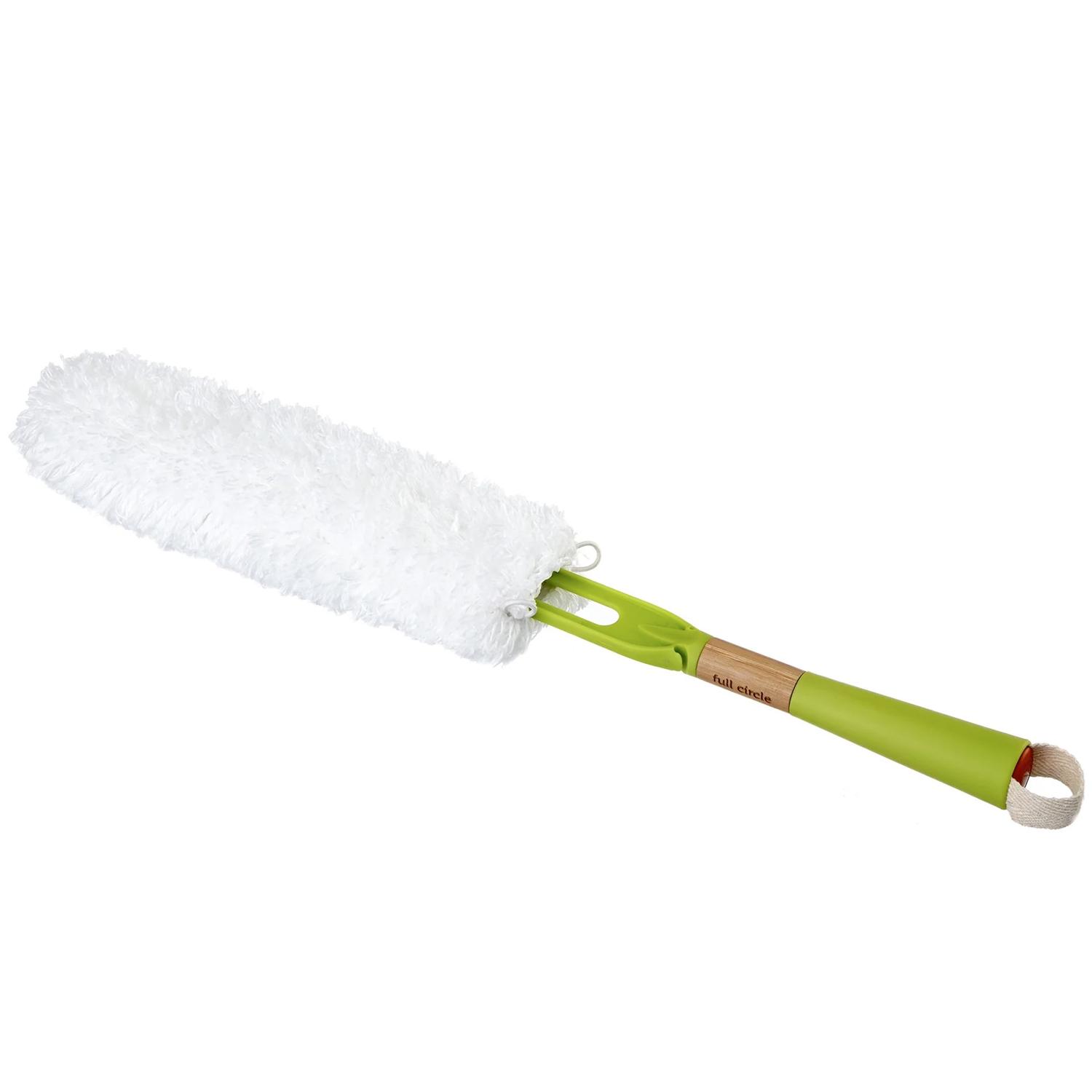 The microfiber head on Full Circle's duster picks up dust like a magnet from bookshelves, baseboards, ceiling fans, and a whole lot more. The flexible handle helps you reach inconvenient places, while the microfiber head goes in the washing machine for cleaning. Made of bamboo, recycled plastic and microfiber, the Dust Whisperer measures just over 20" long.