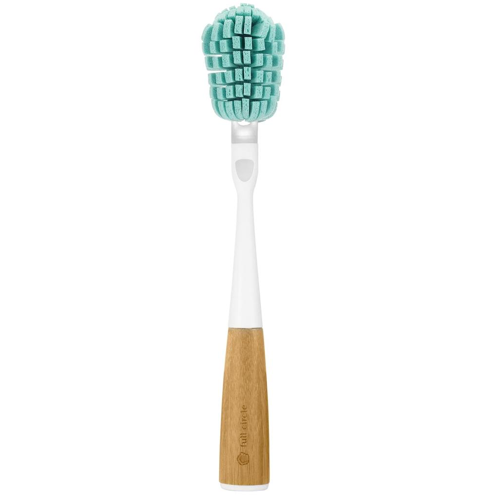 Designed to clean inside tall tumblers and wine glasses, this brush from Full Circle features layered foam that can easily remove lipsitck marks. The foam head is easily replaced when worn and the brush stands on end for drying. Made of bamboo, recycled plastic and cellulose, the Magic Wand glass brush measures 11.6" long with a 2.36"-dia. brush head.