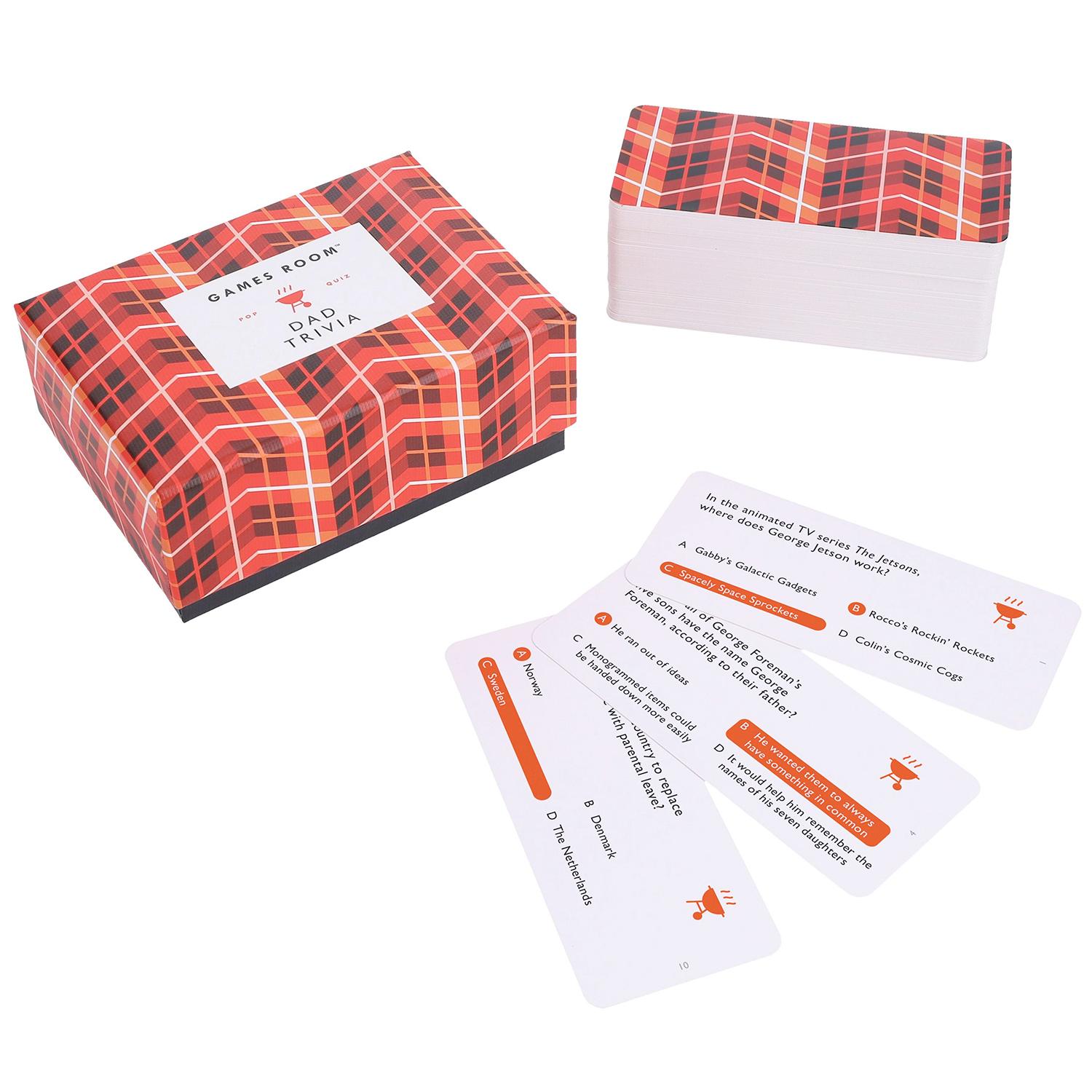 Find out if father really knows best with Dad Trivia. In a handsome portable box, these 140 questions all about dads are a fun trivia challenge wherever you want to play. With topics taken from pop culture, history, sports, the news, and more, it's sure to be for fun for the whole family, and especially for Dad!.