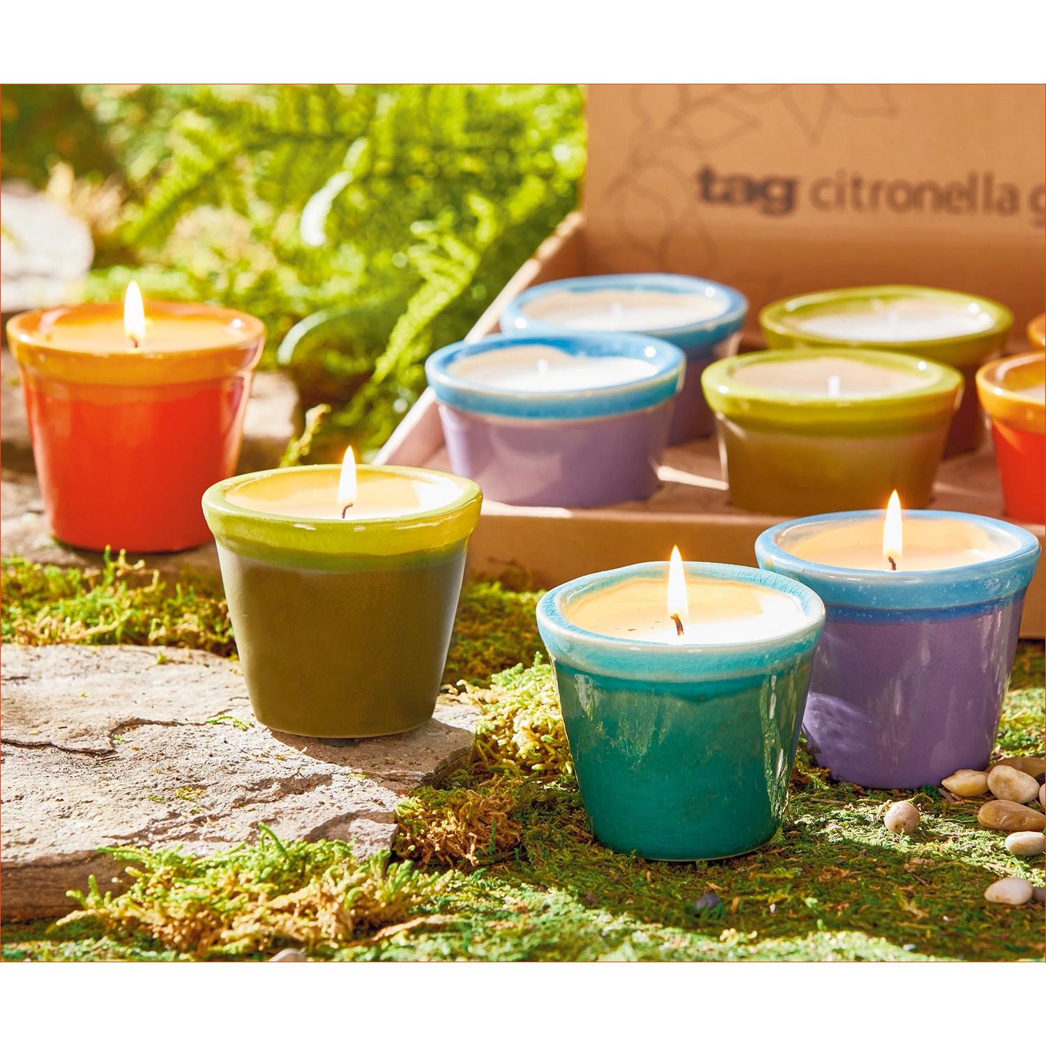 Infused with citronella to help keep the bugs at bay, this charming terra cotta candle is perfect for outdoor use. It’s made with pure soy wax with a cotton wick and has a burn time of approx. 6 hours. 3.15” in diameter 2.5” tall. Choose from four colors, priced and sold individually. Please specify your color choices in the Order Notes field in your shopping cart.