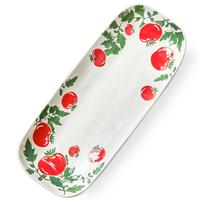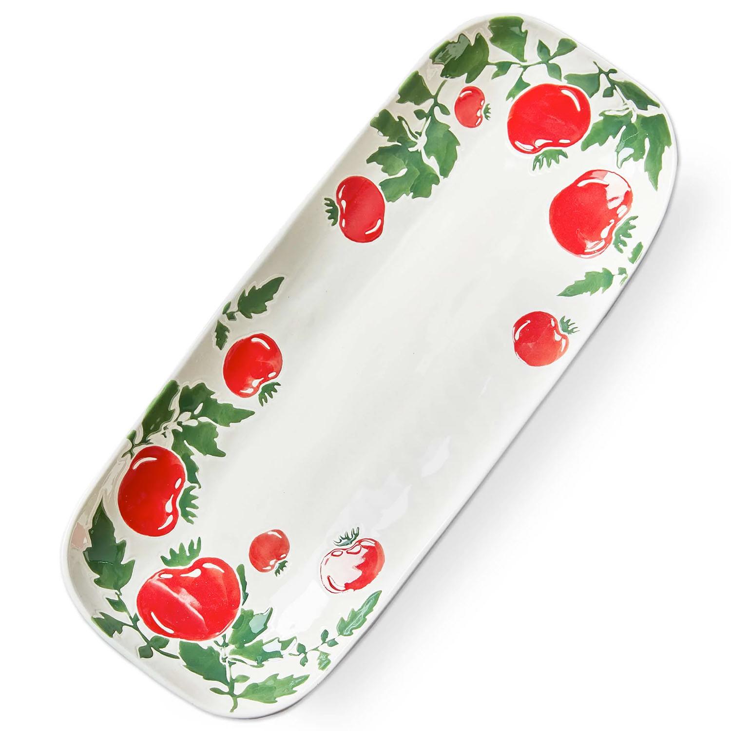 Beautify your table with this lovely platter that features a hand-stamped design. It’s made of rugged stoneware that’s dishwasher safe and it measures 16” x 6”.