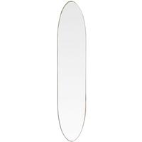 Skinny Gemma mirrors are perfect wall accents, measuring 9.5” wide and 45.25” tall, and featuring gold-finished metal frames.
