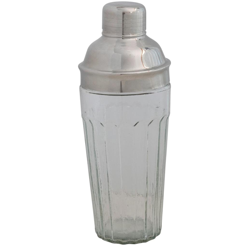 A great bit of vintage style for classic or modern cocktails, this elegant shaker features a heavy glass container and a stainless-steel top. Dishwasher safe, 9.5" tall.
