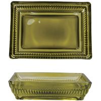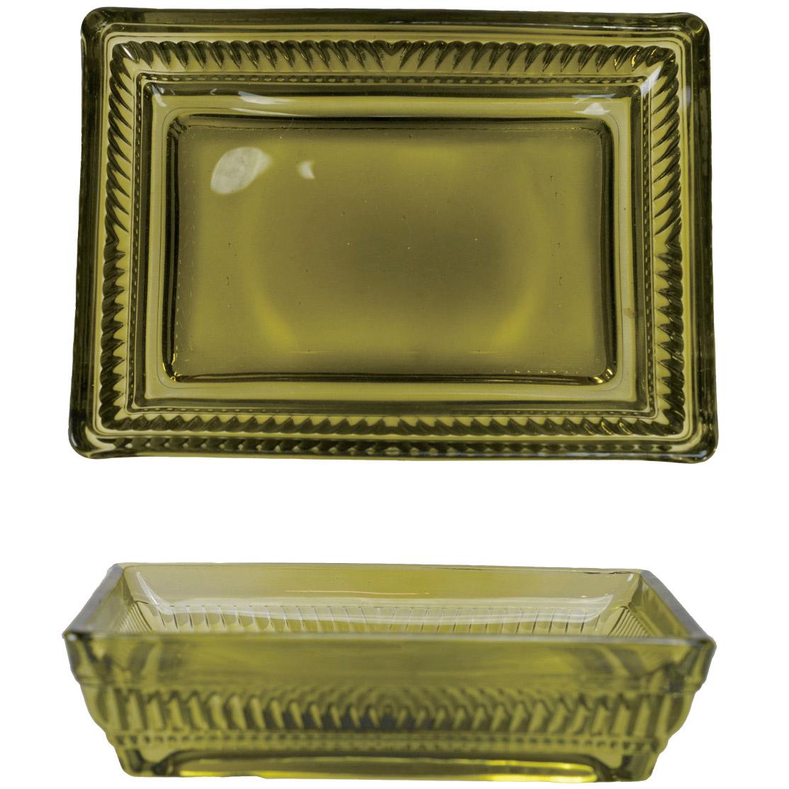 Made of pressed glass, this richly colored soap dish measures 5.25” x 4”.