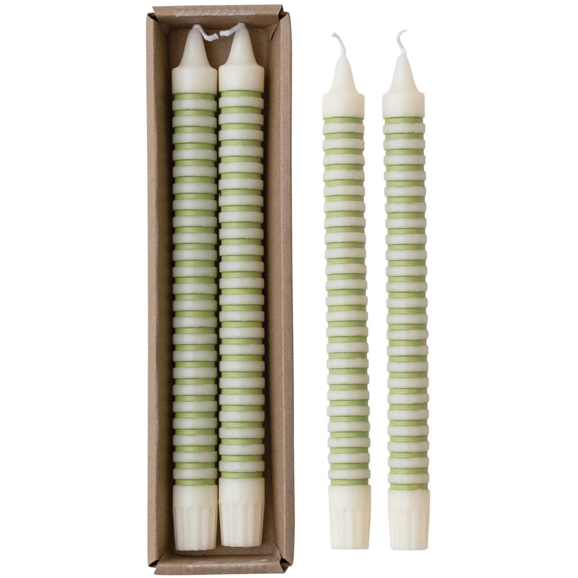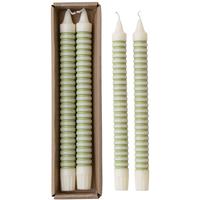 Green Stripe Taper Candles Set/2