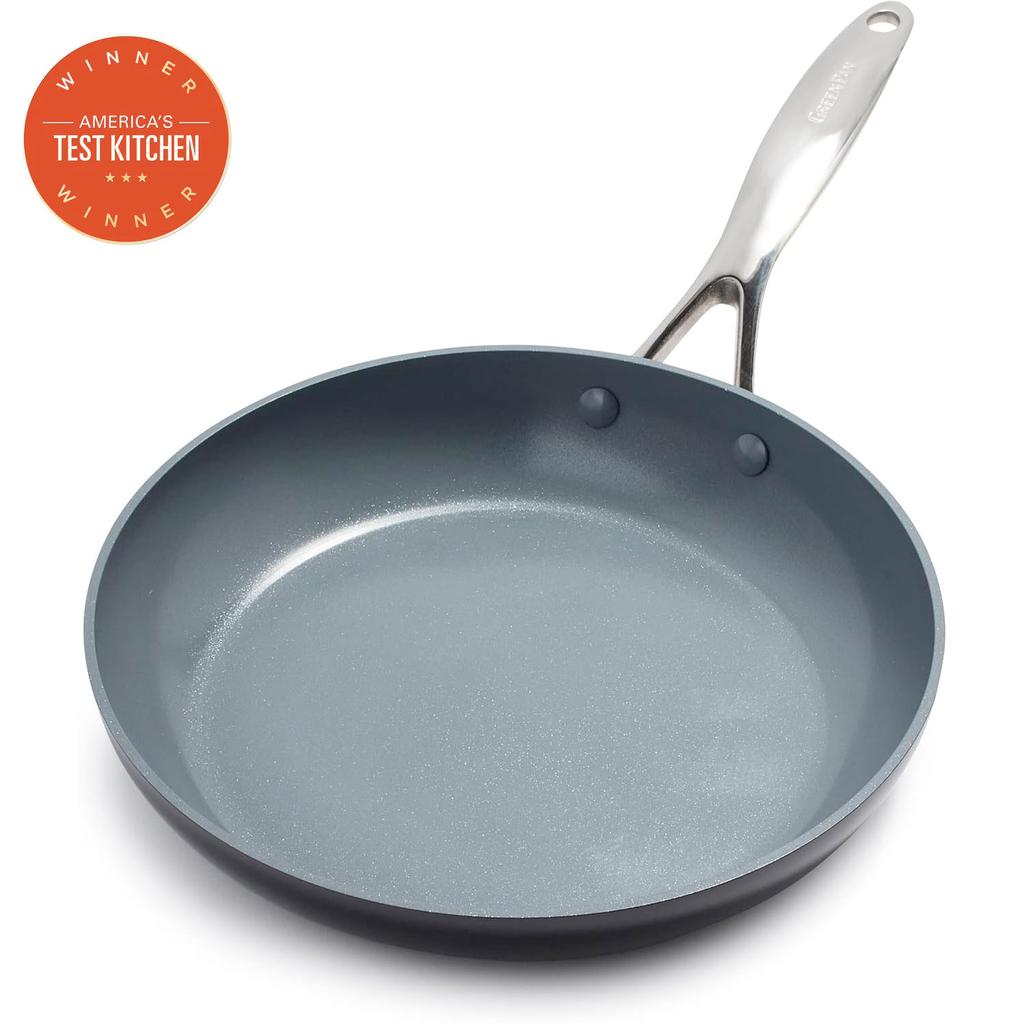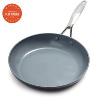 GreenPan Valencia Pro skillets have been honored by America's Test Kitchen as the best ceramic non-stick frypans. Find out why here. Valencia Pro skillets feature several distinctive features, with their exclusive non-stick coating perhaps the most important. After all, GreenPan invented the PFAS-free non-stick cooking surface. This diamond-infused ceramic coating is PFAS and PFOA free, and it's made from a material derived from beach sand, so there’s no risk of producing harmful fumes. It's slick to start with and it stays that way, even if you use metal utensils. Food, even eggs, just slides right out of the pans. And, if you don't want to simply wipe it out when done, your Valencia Pro skillet will go right in the dishwasher.