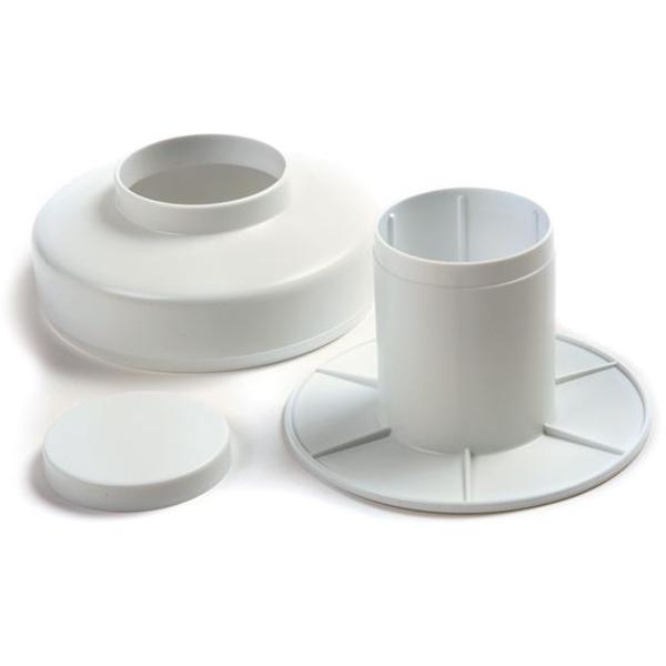 Turn out uniform, even-cooking, 4"-diameter hamburger patties with this easy to use press. You can vary the thickness of the patties by the degree of pressure. 1/2"-thick patties will be 1/3 of a pound, 3/8"-thick patties will be 1/4 lb..Pressing patties onto parchment paper makes it easy to transfer patties to the pan or grill. 4.5" in diamter, 2.5" high, dishwasher safe.