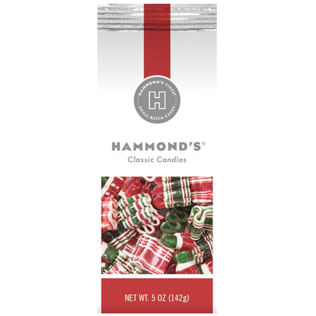 Get into the holiday spirit with Hammond's mini ribbon candy Christmas mix, a festive assortment that features bite-sized pieces of Peppermint, Cherry, and Cinnamon ribbon candy. 5-oz. bag.