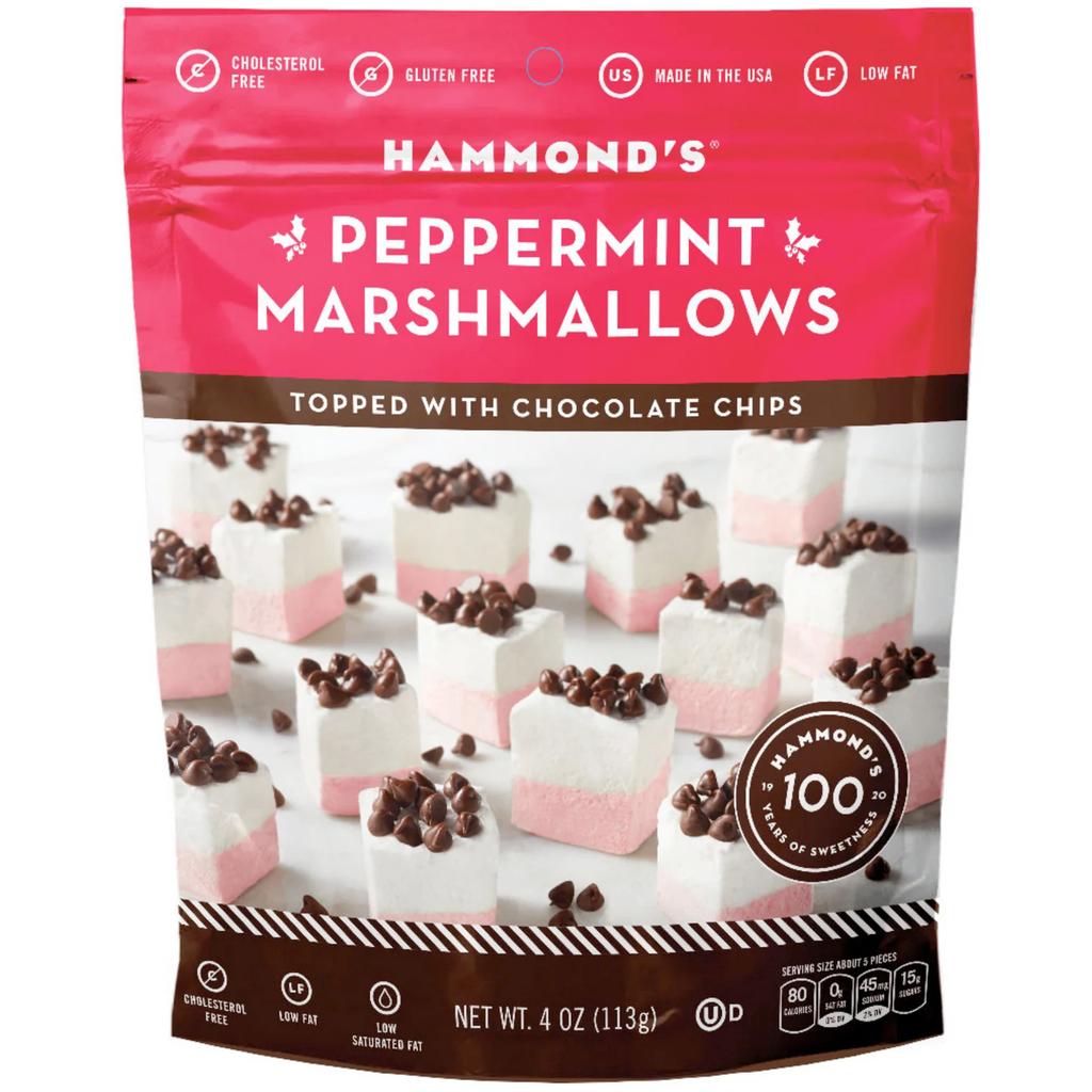 Whether you're looking to add some holiday cheer to your hot chocolate, take your brownies to the next level, or just enjoy a treat, the chocolate-chip-topped peppermint marshmallows will fit the bill. 4-oz. resealable bag.