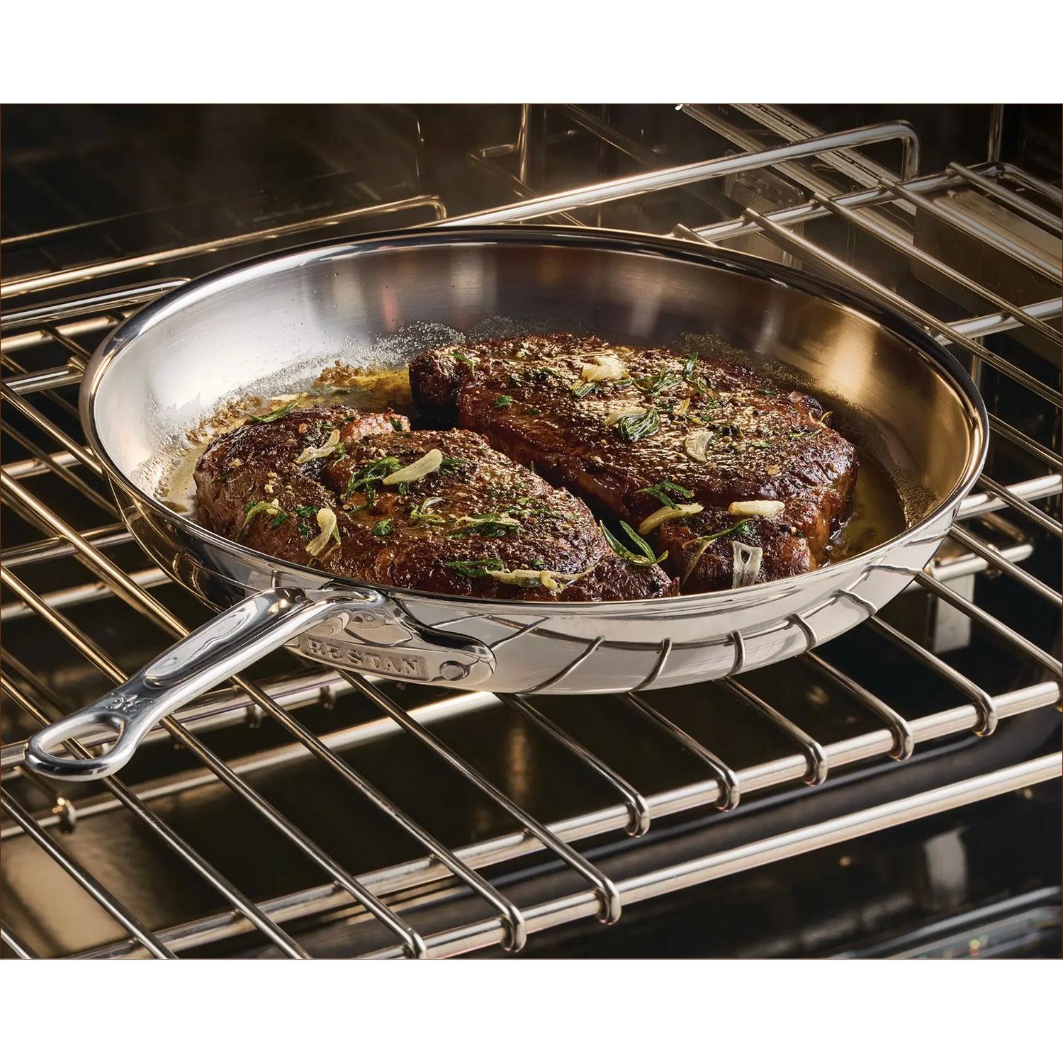 Hestan’s ProBond Luxe cookware take Hestan ProBond pots and pans to the next level. ProBond Luxe cookware features gleaming, mirror-polished exteriors compared to the brushed exteriors of ProBond, along with super-fine, satin-finished cooking surfaces that are even smoother and less porous than the cooking surfaces on ProBond cookware, for easier clean up. Plus, ProBond Luxe pans feature new seamless handles from celebrated chef Thomas Keller that have a flatter angle than ProBond handles, along with a vent hole that eliminates 20% of the heat transfer from the pan to the handle. In addition, these new handles eliminate the seam between the handle and the pan body that can trap food.