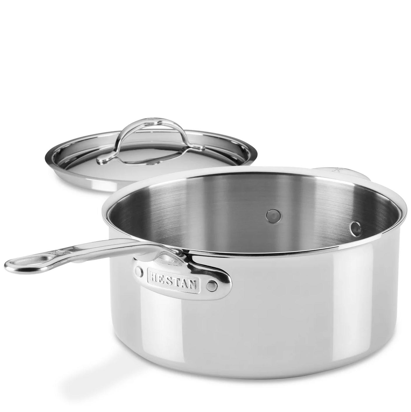 Hestan’s ProBond Luxe cookware take Hestan ProBond pots and pans to the next level. ProBond Luxe cookware features gleaming, mirror-polished exteriors compared to the brushed exteriors of ProBond, along with super-fine, satin-finished cooking surfaces that are even smoother and less porous than the cooking surfaces on ProBond cookware, for easier clean up. Plus, ProBond Luxe pans feature new seamless handles from celebrated chef Thomas Keller that have a flatter angle than ProBond handles, along with a vent hole that eliminates 20% of the heat transfer from the pan to the handle. In addition, these new handles eliminate the seam between the handle and the pan body that can trap food.