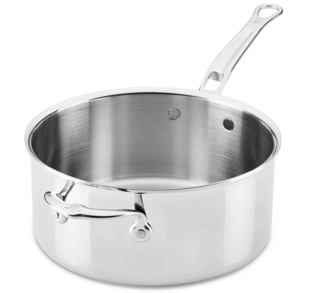 - Larger diameter and shorter sides than most saucepans and skillets to provide larger cooking surfaces enhanced reductions.
