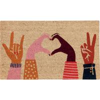 Nice people welcome! This inviting doormat is made of natural coir fibers with a durable vinyl backing. It's printed with fade-resistant inks, but is best place in a weather-sheltered spot. 30" x 18". Spot clean or shake out to clean.
