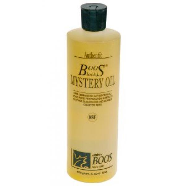 John Boos Mystery Oil is a mixture of mineral oil, linseed oil and tung oil and will give your John Boos cutting board or butcher block the same quality finish as that applied at the factory. John Boos recommends oiling cutting boards and butcher blocks that are used regularly every 4 - 6 weeks. This completely food-safe oil will keep boards and blocks in great shape. 15-oz. bottle.