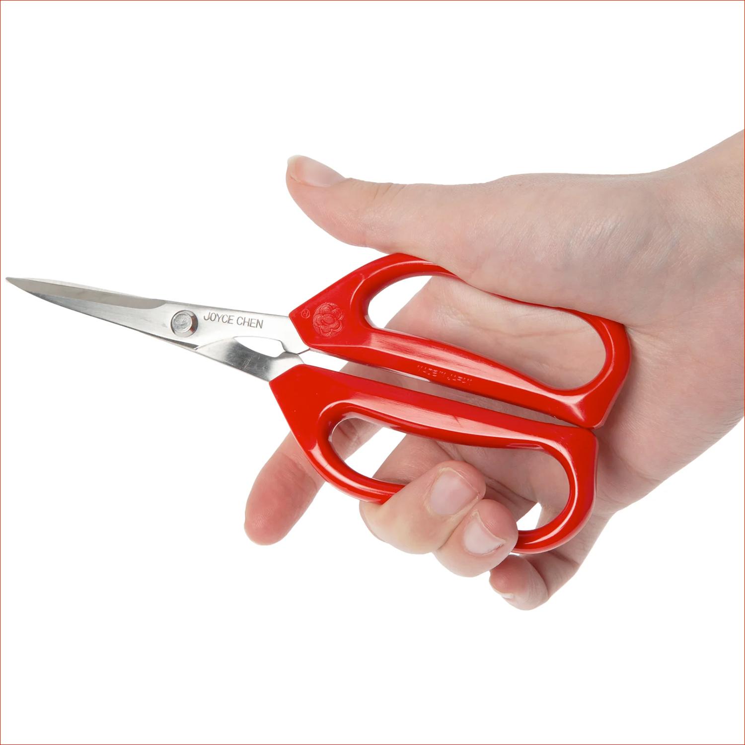 For decades, Joyce Chen's original unlimited scissors have been the gold standard. From the kitchen to the garden, these precise scissors are ideal for cutting meat, fish, seafood, vegetables, flower stems, and a whole lot more. The high-carbon, Japanese stainless-steel blades resist staining and stay sharp longer, while the flexible, large-loop handles offer comfort and control for right and left-handers alike. These will quickly become your go-to scissors for just about everything. 6.3" long, hand wash.