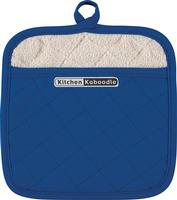 This classic potholder is made just for us, and is accented with a discreet Kitchen Kaboodle logo. Yay for the home team! Woven of heavy, quilted, 100% cotton twill, this 8" x 8" potholder combines effective thermal insulaton for your hands with outstanding durability, and easy care. Machine wash cold, tumble dry low. Matching aprons and oven mitts available, too.