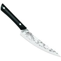 Each Kai Pro knife features a blade made from Japanese AUS6M steel, which extends to the end of the handle for a balanced, full-tang construction. Kai Pro knives perform differently than western-style knives, which are usually sharpened at a 20-25 degree angle. Kai Pro takes a finer, 16 degree edge for smoother, sharper action. This Japanese-style hammered finish on the blades serves a function as well as giving a dramatic appearance. The hollow cavities form tiny pockets of air, helping release food from the steel. In addition, the finish reduces blade drag while cutting. The handles on Kai Pro knives are made from a high-performance thermoplastic that is extremely rigid, to add strength and comfort during food prep. As you cut, your hand will fit perfectly around the durable, riveted handle. This pro-level grip offers a lifetime of performance for home cooks and is equally ready for the hectic tasks of a commercial kitchen.