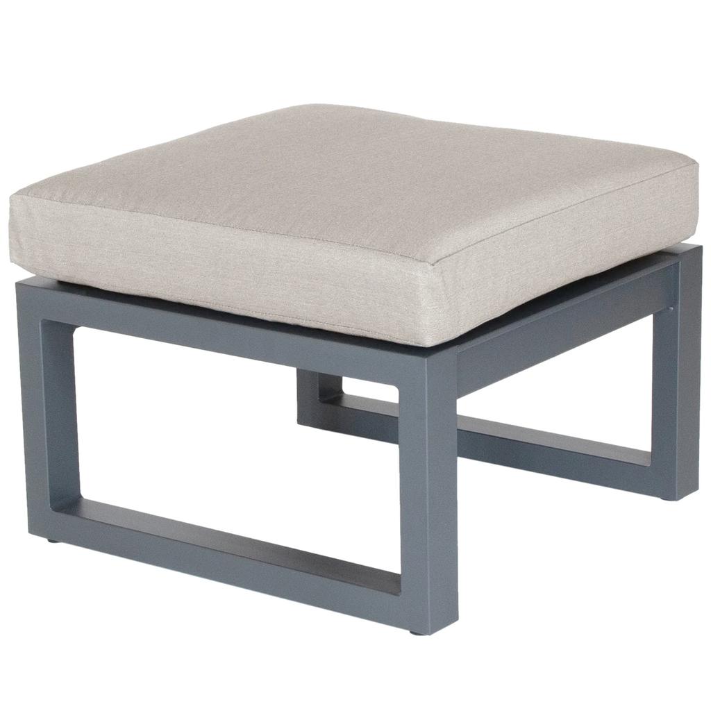 A deck or patio is for much more than outdoor dining; you can chat, entertain or just plain lounge in stylish, super-comfortable Elba outdoor furniture from Kettler. Striking design and high-quality materials characterize the contemporary Elba ottoman The frame is made of square-section aluminum tube, for light weight, strength and resistance to corrosion; the frame is powder-coated in a sleek, matte-grey finish and all the hardware is stainless steel. Underneath the seat cushion is a textile sling suspension system for relaxing comfort, while the cushion itself is made of 4" high-density foam covered in 100% acrylic Sunbrella fabric, the standard for outdoor use, resistant to fading and moisture. The Elba lounge chair measures 29" wide, 29" deep and 16" high. It's the perfect pairing with the Elba lounge chair as shown in the photo.
