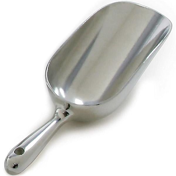 A kitchen must-have, this scoop has a capacity of 38 ozs. Made of pure aluminum, it should be hand-washed to retain its polish; dishwashing will discolor it, but will otherwise do no harm.