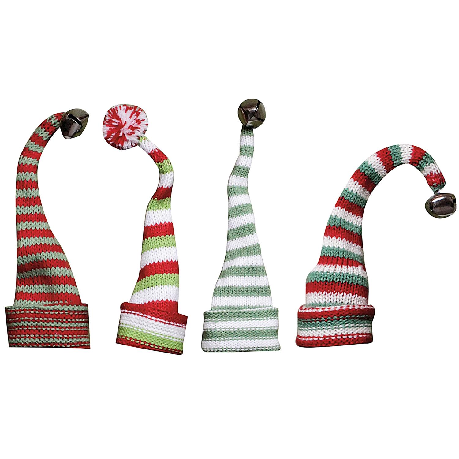 Dress up a bottle for giving or for a party with one of these 7"-tall knit bottle toppers. Each features a pom-pom or jingle bill on the top. Four styles, priced and sold individually; please specify your choices in the Order Notes field in your shopping cart.