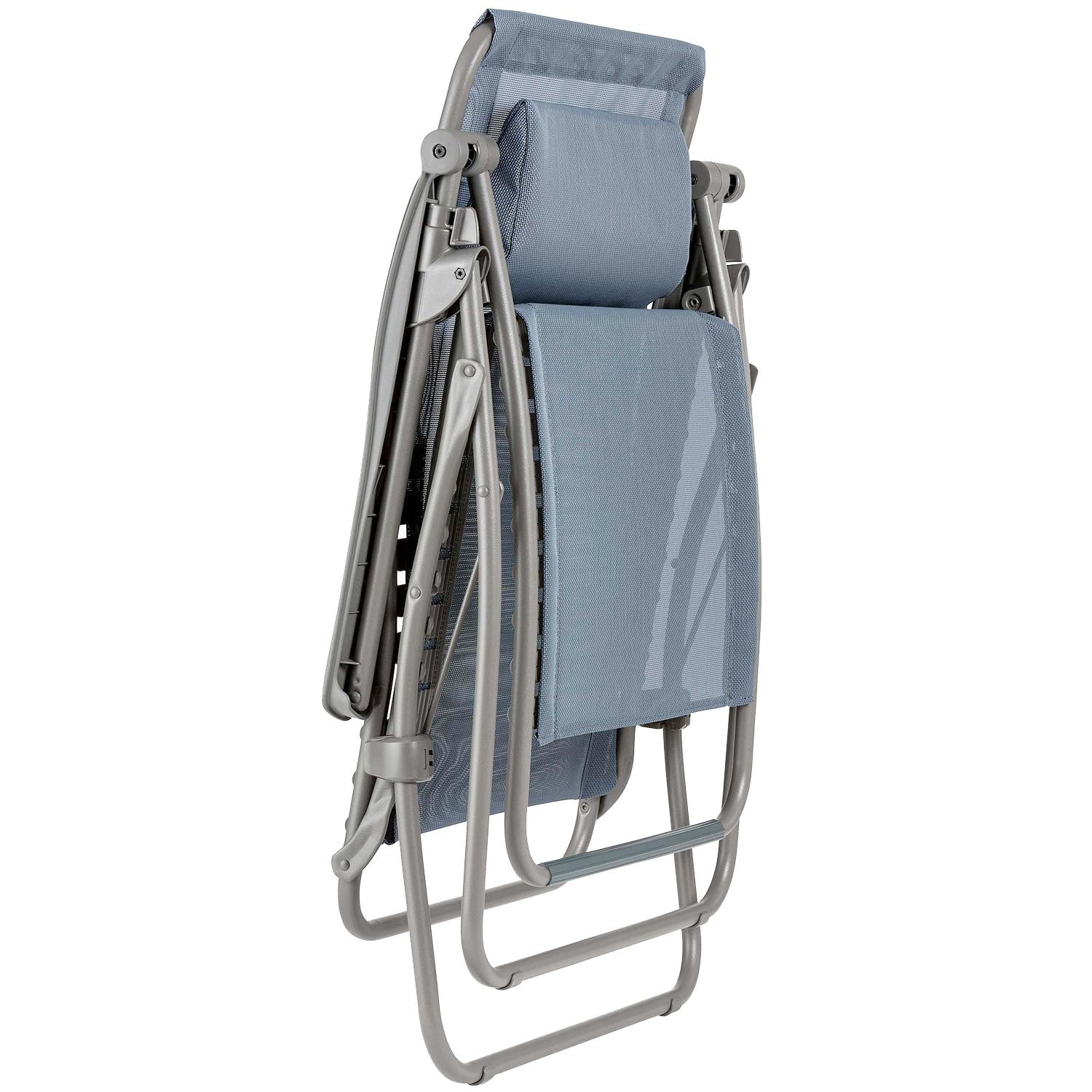 Lafuma Relaxor reclining chairs are the most comfortable chairs we've ever put ourselves in. No matter the position of the chair, from upright to fully-reclined, there's comfortable support everywhere. Just sit in one, lean back, and you'll surely agree. The RSXA Relaxor reclines to an infinite number of positions, including "zero gravity", with the legs positioned slightly above the heart, giving optimal relaxation.. Adjustment is easy, by either shifting your body weight, or by pushing against the padded armrests, which move with you as you recline, a little touch added to maximize comfort.