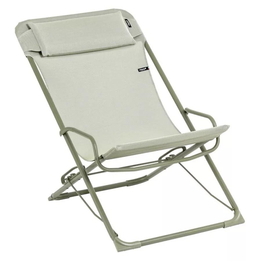 Lafuma's Transaswing sling chair takes the Maxi Transat sling chair two steps further by adding armrests and a flexible backrest that follows your movements and allows a gentle rocking motion. It makes for a superbly comfortable, yet lightweight and portable chair for the deck, patio, park, or concert. The Transaswing features a three-position guide bar which assists the backrest as it reclines, letting the chair adapt to all your outdoor moments: seated for time with friends, semi-reclined to rest, or fully reclined for a sunny nap. Plus, the armrests make it easy to get in and out of.