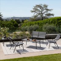 The perfect companion for the Vence armchair and Vence bench, the Vench coffee table is made of galvanized steel coated in UV-resistant polyester paint. It measures 23.25" x 23.25" x 16" high. Threaded levelers at the ends of two legs let you easily balance the table to correct for any surface irregularities.