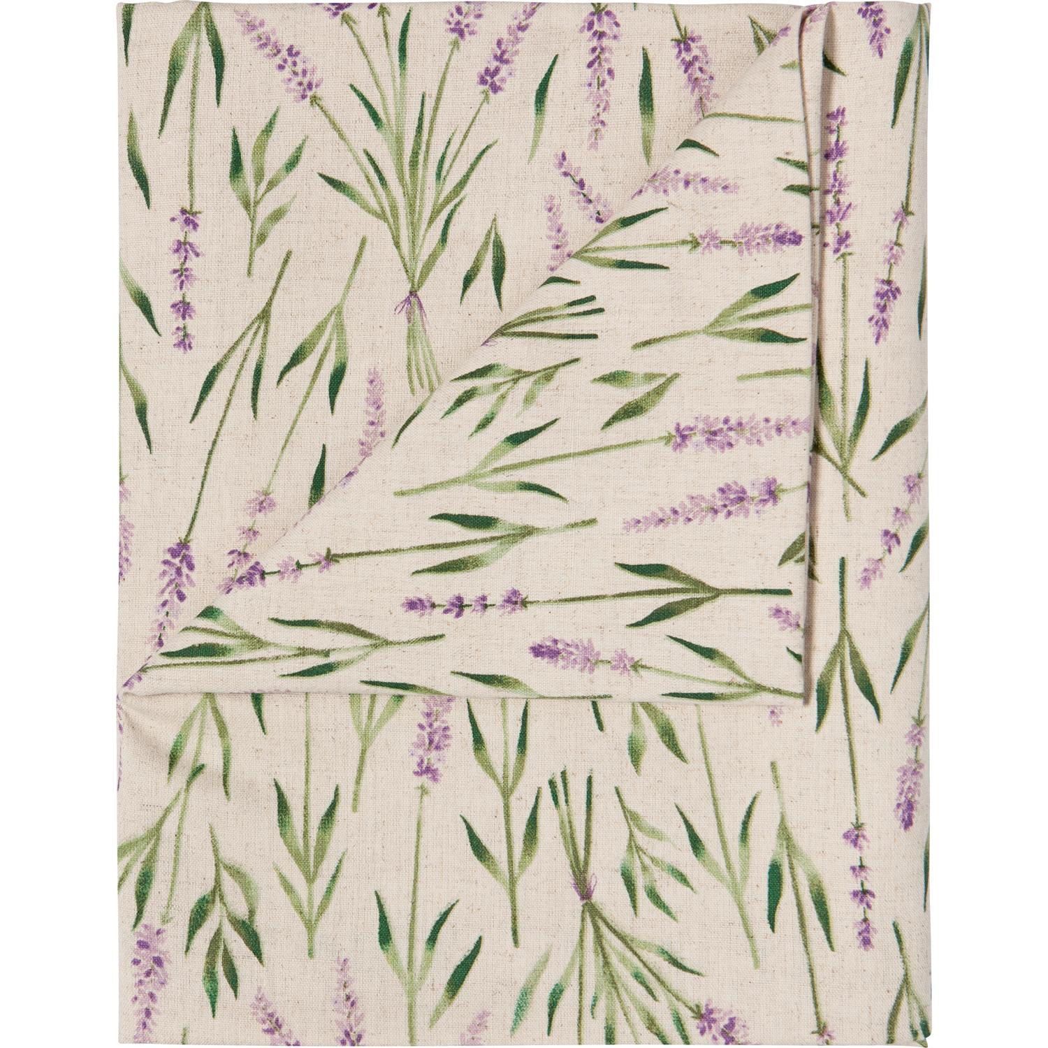 You can practically smell the scent of fresh lavender with this beautiful tablecloth. It measures 60" x 90" and is made from a blend of 70% cotton and 30% linen. It matches the Lavender Spruce napkin and table runner. Machine wash cold, tumble dry low.