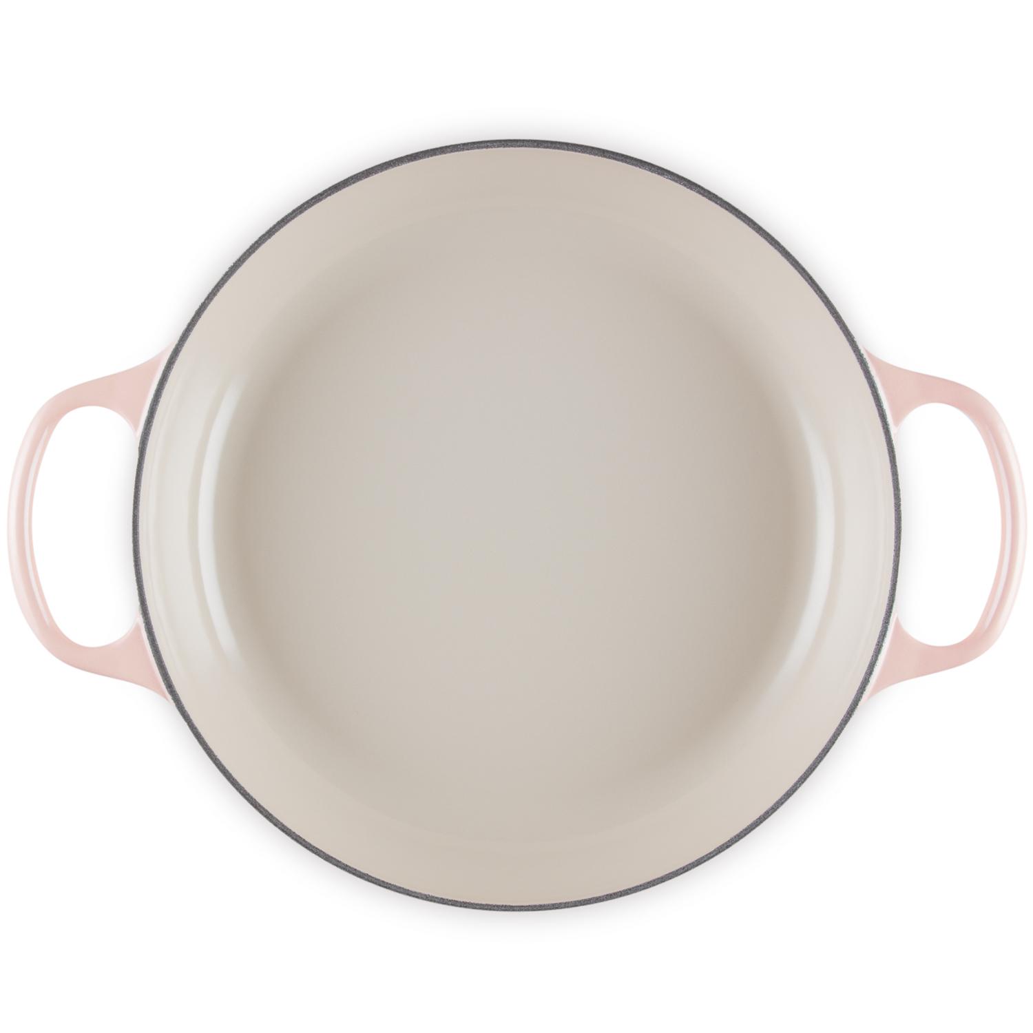 The Le Creuset enameled cast iron braiser is uniquely designed to provide steady, even heat to transform tough cuts of meat and hearty vegetables into tender, flavorful dishes. The wide base allows ingredients to be placed in a single layer for searing without crowding; once liquid is added, the domed lid circulates steam to lock in moisture and flavor. The versatile shape of the braiser also makes it perfect for shallow frying, steaming, stews, casseroles and serving at the table. The easy-to-clean porcelain enamel requires no seasoning, minimizes sticking and is dishwasher-safe. 11.75" in diameter, 15.75" through the handles, 5.25" high. Hand wash only.