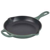 This beautiful cast-iron skillet, with it's bright enamel finish, is ideal for use on the stovetop or in the oven, and is ideal for magnetic induction cooking. The interior is also enamel, with a textured, matte-black finish. Hand wash only.
