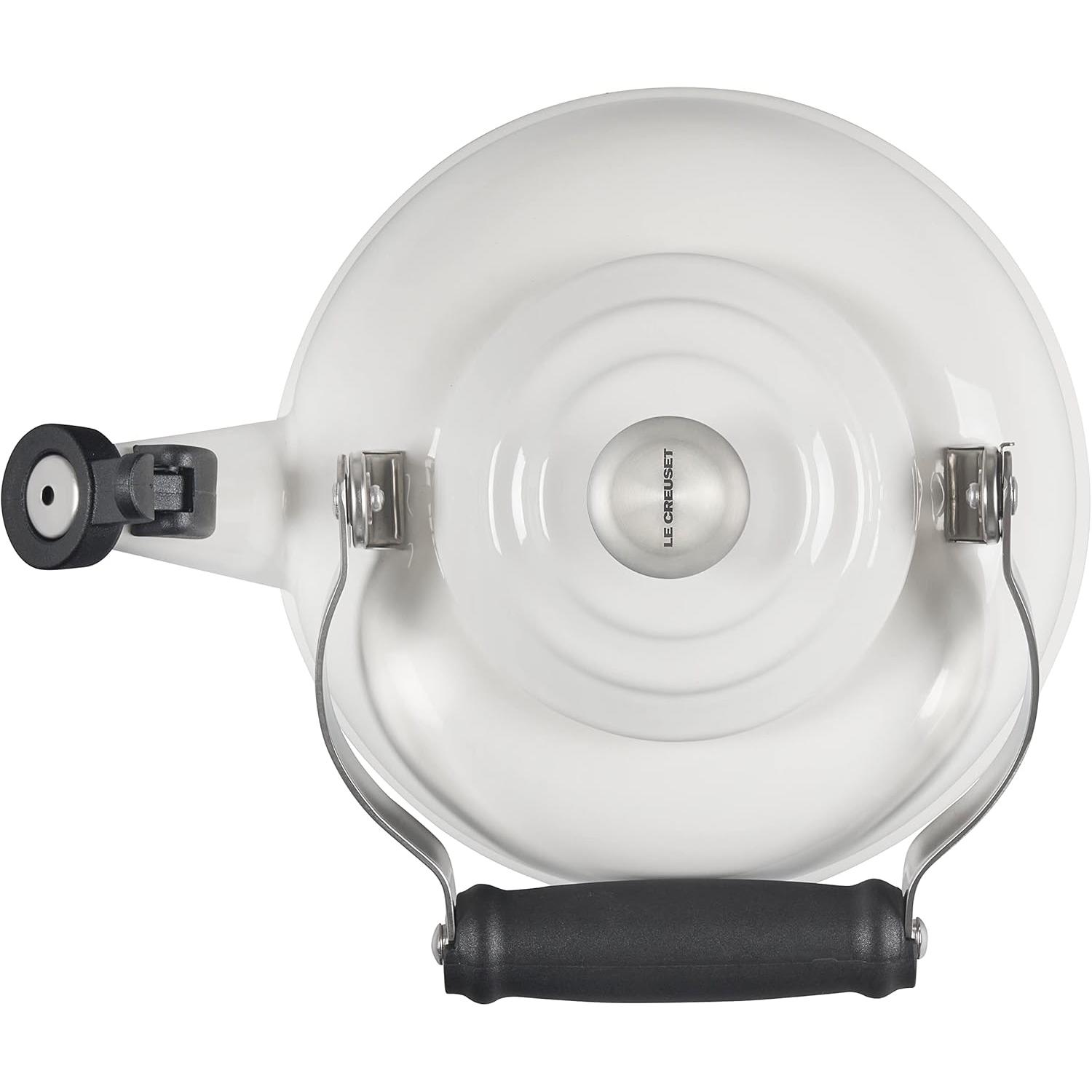 Traditional styling combined with modern materials and gorgeous colors make Le Creuset kettles a welcome addition to any stovetop. Their unique, locking handles and phenolic knobs make lifting, pouring and cleaning easy. The Le Creuset Classic kettle is made of quick-and-even-heating carbon steel with a enamel finish. 1.8-qt. capacity with a whistle alert when the water boils