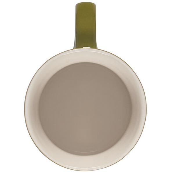 Le Creuset's coffee mug has a striking appearance and is quite practical, safe in the oven, microwave, freezer, and dishwasher. 12-oz. capacity.