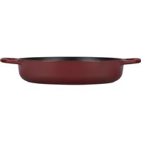 Le Creuset's enameled cast iron Everyday Pan has a wide surface area that is perfect for everything from pan roasting and frying, to one pan meals, simmering sauces and more; it essentially combines the benefits of a braiser with the ease of use of a fry or sauté pan. Slightly curved sides make it easy to stir, flip and serve, while oversized handles provide a secure grip for transferring from stove to oven to table. The Everyday Pan measures 11" in diameter and 2.5" high and has a capacity of 3.4 qts. Crafted from Le Creuset's legendary enameled cast iron, the interior surface is finished with a black satin enamel that eliminates the need for the traditional seasoning and maintenance of raw cast iron. The enamel is specially formulated to enhance cooking performance, and develops a natural patina over time making it virtually nonstick and easier to maintain and clean.