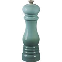 The Le Creuset pepper mill is made of solid hardwood, and features a corrosion-proof ceramic grinding mechanism along with Le Creuset's brilliant signature colors. It's simple to adjust the coarseness of the grind; just turn the knob on the top of mill clockwise for a finer grind, counter-clockwise for a coarser grind. 8" tall.