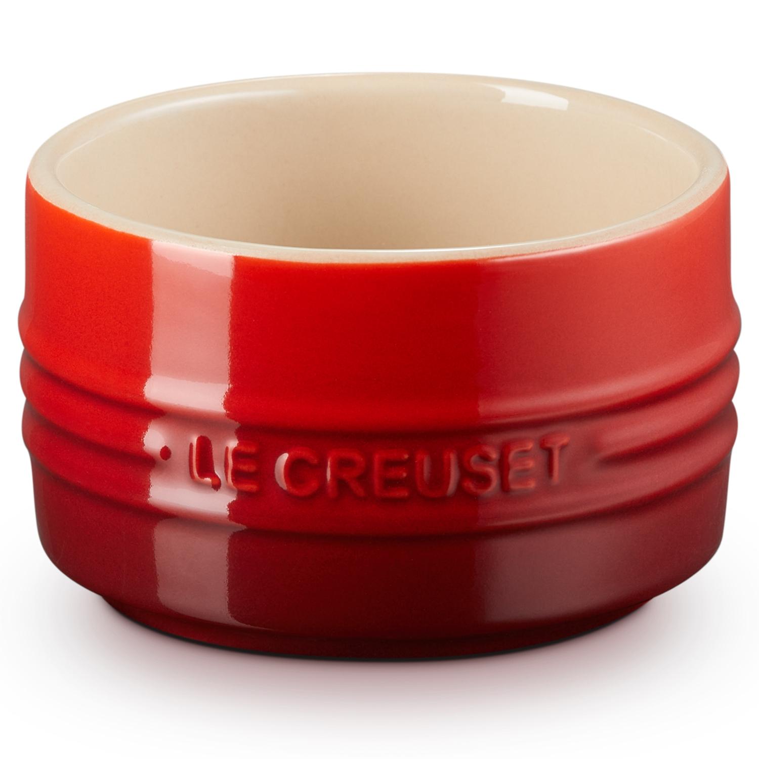 Le Creuset ramekins are so versatile, ideal for individual portions of desserts, casseroles, pot pies and more, and for creating an elegant presentation at the table. They're also great for prepping and storing ingredients, and putting out snacks and dips. Le Creuset ramekins feature straight sides and a ridge along the base that allows them to stack vertically without sticking together or tipping over. They're made from premium stoneware, and finished with vibrant glazes that match Le Creuset cast-iron cookware and bakeware, making them easy to clean, dishwasher-safe, and resistant to chips, scratches and stains. 3.7" in diameter, 2.2" high.