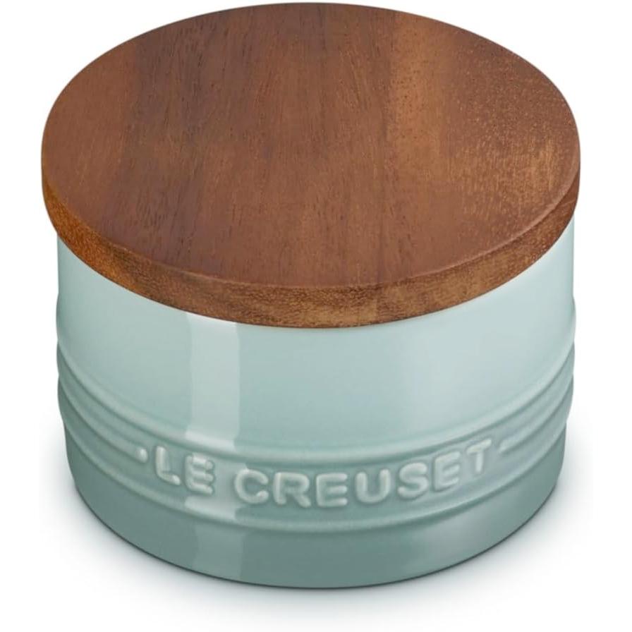 Made of rugged Le Creuset stoneware, this 7-oz. salt cellar features a solid acacia lid with an airtight silicone seal. The colorful glaze is nonporous, non-reactive and resistant to chips, scratches and stains, plus it matches Le Creuset cookware and bakeware. The ceramic cellar is dishwasher-safe, the lid is hand wash only.