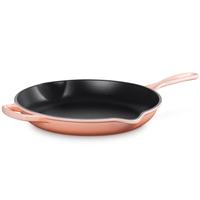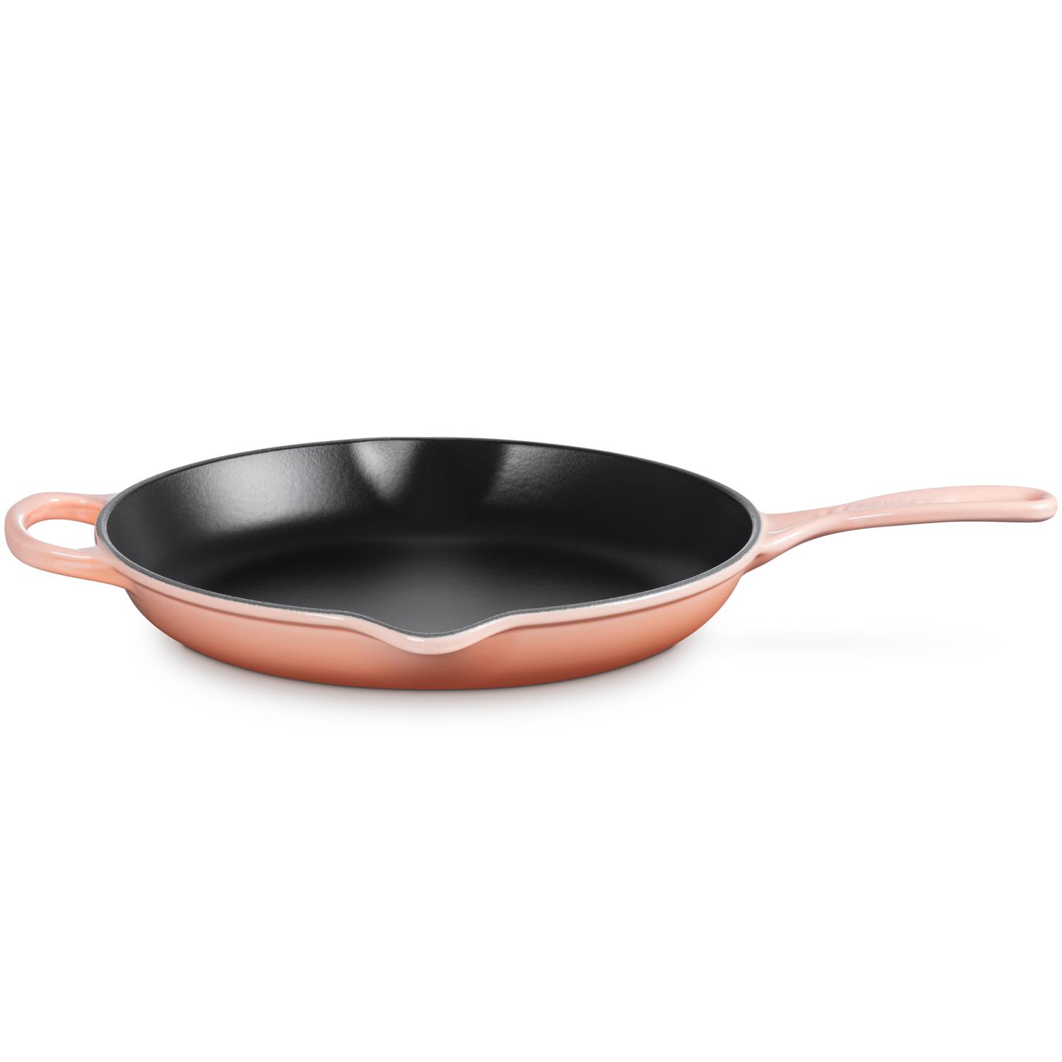 This beautiful cast-iron skillet, with it's colorful enamel finish, is ideal for use on the stovetop or in the oven (to 500° F), and is ideal for magnetic induction cooking. The interior is also enamel, with a textured, matte-black finish. Hand wash only.