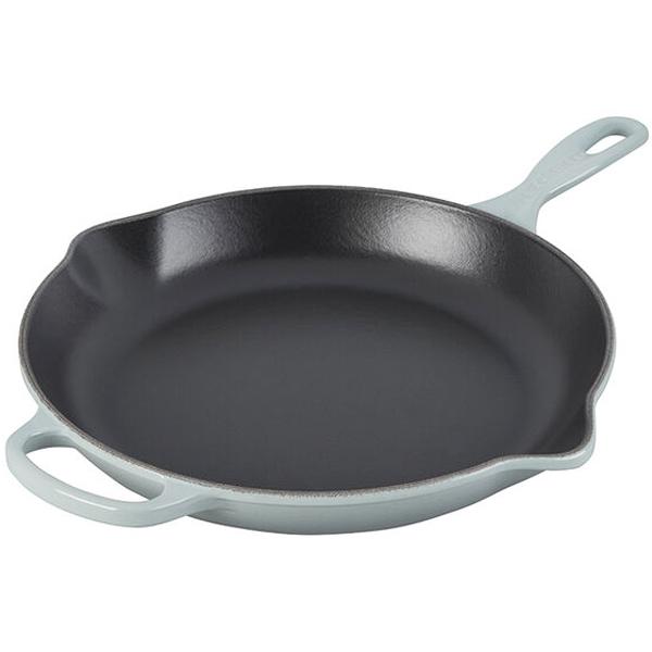 This beautiful cast-iron skillet, with it's bright enamel finish, is ideal for use on the stovetop or in the oven, and is ideal for magnetic induction cooking. The interior is also enamel, with a textured, matte-black finish. Hand wash only.