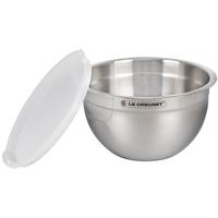 These rugged bowls are made of 18/8 stainless steel, with a brushed finish on the outside and polished interiors. They feature air-tight lids and are safe in the dishwasher and in the freezer. The sizes include 1.5-qt. (7" diameter), 3-qt. (8.5" diameter), and 5-qt. (10" diameter).