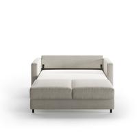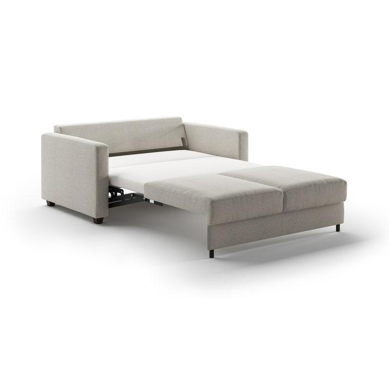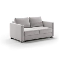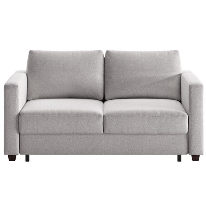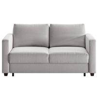 The Fantasy full XL (extra-long) sleeper features a unique, split-mattress design (no, you don't feel the split when you lay down), so each side opens and closes easily and independently with just one hand. The foam mattress provides a comfortably firm sleeping surface with no springs, bars, or sagging, like you find on conventional sleeper sofas. It means a good night's sleep for everyone and happy guests. When the Fantasy is folded up, you have an equally comfortable sofa with trim, clean lines. The bed unfolds to leave no room between the head of the mattress and the inner back of the sofa, meaning it takes up less floor space than a conventional sleeper mechanism. In fact, the Fantasy full XL sleeper measures just 89.75" from the wall to the end when fully opened. The mattress is 55" wide and 80" long (6" longer than a standard full); the sofa itself measures 64" wide, 39" deep and 35" high. It's a great way to provide guests with a great night's sleep, and give yourself a great-looking sofa.