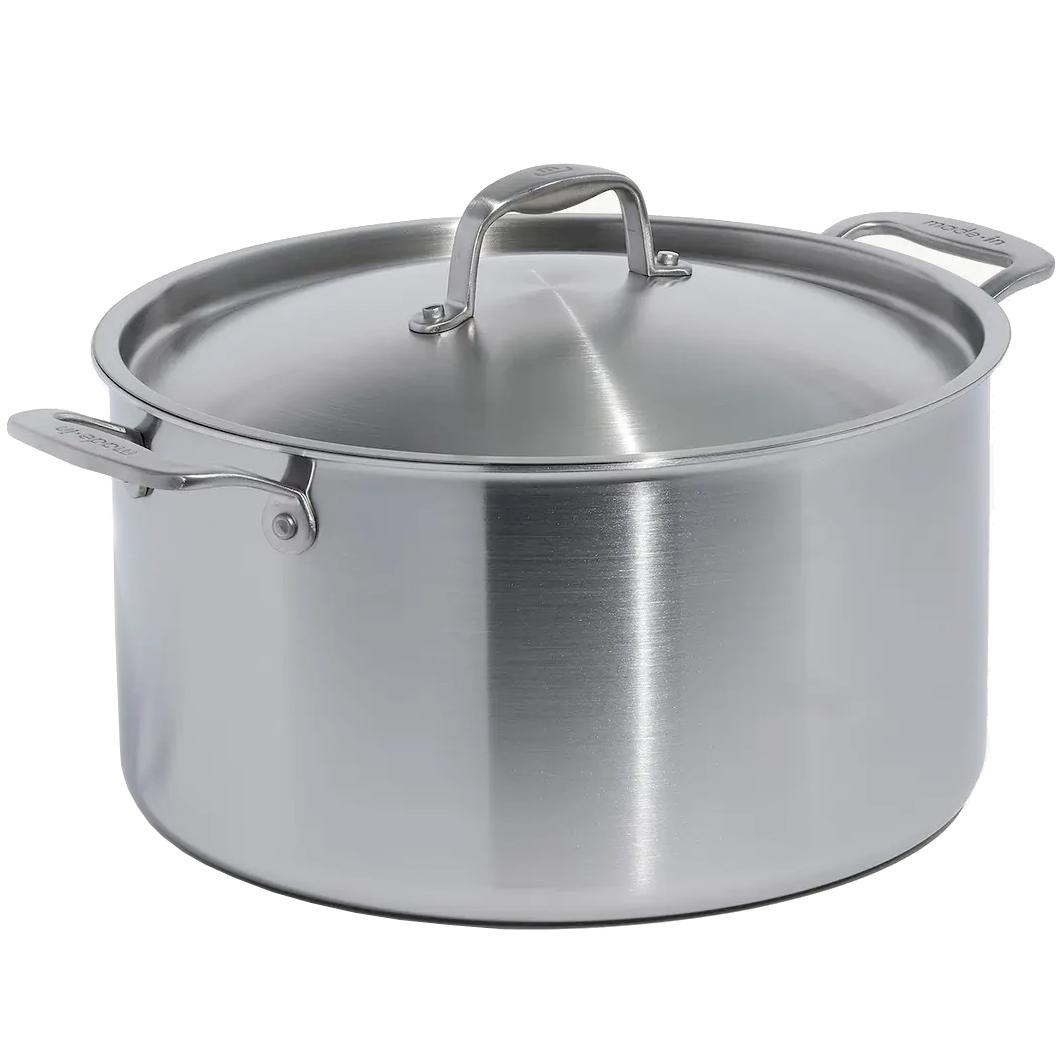 Made In stainless-steel cookware is made in Italy out of 5 layers of clad metals, featuring a pure aluminum core for rapid, uniform heat conduction. Apart from the ceramic-non-stick frypan, the cooking surfaces and the exterior are stainless steel, as are the proprietary, stay-cool handles. The ceramic-non-stick frypan is tough enough that it's used in high-volume restaurant kitchens throughout the world. It features a multi-layer, ceramic-non-stick cooking surface that is PFOA and PFOS-free, and is oven-safe to 500° F. All the pans in the set perform superbly on gas, electric, magnetic induction, and ceramic stovetops, and the all-stainless pans are oven-safe to 800° F. They're also dishwasher safe; the ceramic-non-stick frypan should be hand washed.